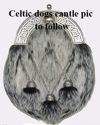 Dress sporrans > Celtic Dogs crossed/straight faux fur - grey - Vegetarian Sporrans - Vegan animal free leather sporrans and belts
