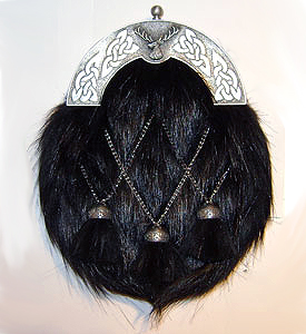 Dress sporrans > Celtic Stag crossed/straight faux fur black - Vegetarian Sporrans - Vegan animal free leather sporrans and belts