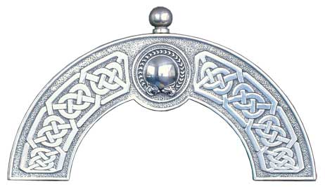 Black dress sporran with a celtic torque cantle (Pewter top) The sporran is made with lorica and faux fur and is availble with either crossed or straight tassels.